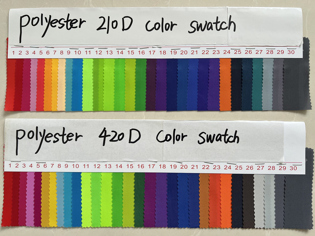 √Following is our polyester 210D and polyester 420D material color swatch.